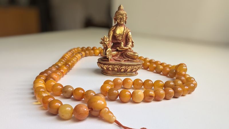 Genuine amber malas for meditation, crafted by Buddhist practitioners