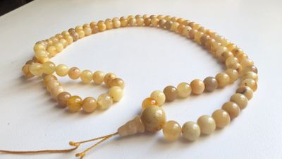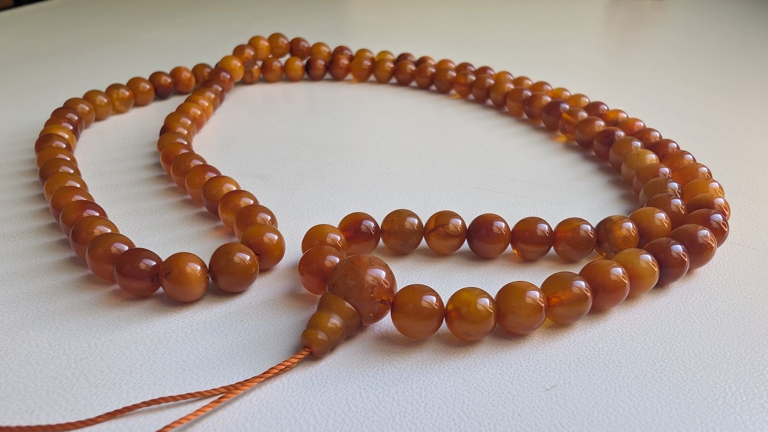 This handmade 108 bead mala is crafted from natural Baltic amber in a striking Copper Amber shade – the deepest and most intense tone of the orange amber family. The beads radiate rich hues of burnt orange, chestnut, and glowing copper, giving the mala a bold and powerful character.