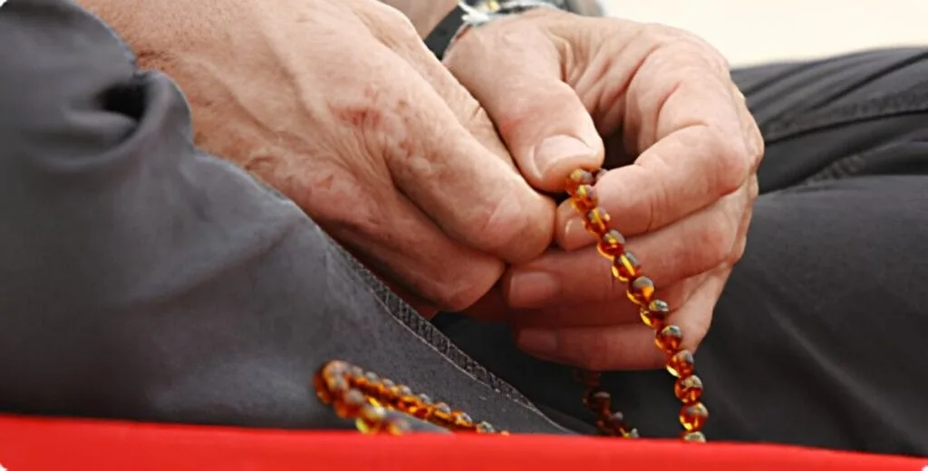 Genuine amber malas for meditation, crafted by Buddhist practitioners