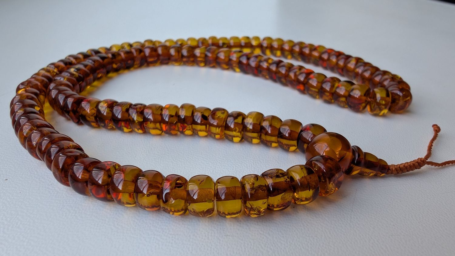 Warm amber – 108 bead Baltic amber mala (8 mm disc-shaped, colour 4)